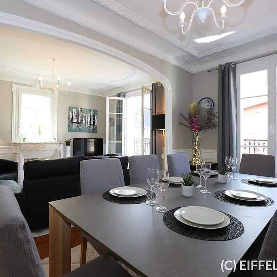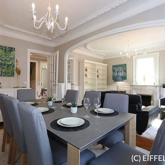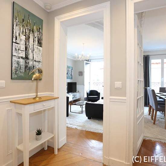 Superbe appartement meublé entièrement rénové situé Rue d’Armaillé, à deux pas de l’avenue des Ternes et ses commerces, y compris le marché Poncelet. Proche des stations de métro Ternes (ligne 2), Argentine (ligne 1) et Charles de Gaulle – Étoile (lignes 1,2, 6 et RER A). L’appartement a bénéficié d’une rénovation complète. Mobilier et décoration raffinés et contemporains. Tout le charme de l’ancien : parquet, moulures, cheminée. Plan en étoile optimisé. Appartement très lumineux. Au 5ème étage avec ascenseur et d’une superficie de 70m2, l...