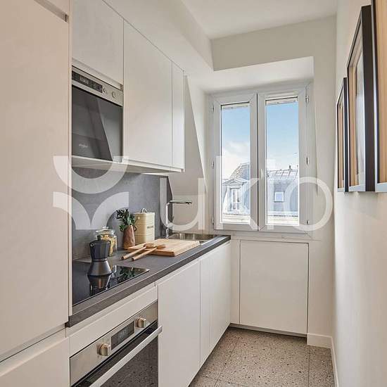Magnifique appartement rénové et meublé situé rue de Courcelles, dans le quartier des Ternes, dans le 17e arrondissement. Il est situé au 6e étage avec ascenseur, à proximité des stations Péreire Levallois, Pereire et Courcelles. À proximité, vous trouverez des attractions telles que l'église Sainte-Odile, le parc Monceau et le musée Jean-Jacques Henner. Il se compose d'une chambre avec un lit double, d'un salon, d'une cuisine, d'une salle de bains et de toilettes séparées. Le lit est équipé de draps doux, idéaux pour passer une bonne nuit d...