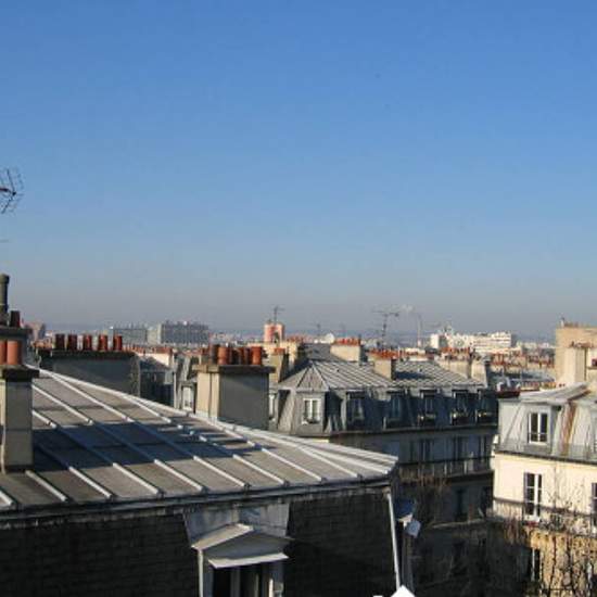 Paris. Batignolles, triple exposition (Est/Ouest principal), RARE vues TRES dégagées (toits et forêt Meudon), TRES lumineux et ensoleillé Proche Montmartre, commerces, marché, transports, cinémas, théâtres, square Batignolles, parc Martin Luther King. - quartier bobo plein de vie avec nombreuses terrasses cafés et restaurants 2 pièces semi-ouvertes en studio rénové en loft très lumineux avec grande hauteur sous plafond (3,5m). Au 6e sans ascenseur : salon avec parquet et cheminée, chambre avec vues dégagées, cliquer sur lien YouTube (après p...
