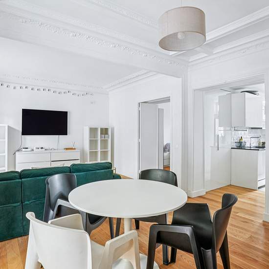 ***EXCLUSIVITÉ ENGEL & VÖLKERS*** Charmant deux-pièces meublé de 55 m² idéalement situé rue Custine, juste en face des célèbres escaliers qui montent à Montmartre. Niché au premier étage d'un immeuble typiquement parisien (sans ascenseur), cet appartement lumineux et plein de caractère séduit par son parquet en bois, ses moulures et ses grandes fenêtres donnant sur la rue arborée. L'espace se compose d'un vaste séjour accueillant un coin salle à manger et un salon confortable, d'une cuisine ouverte entièrement équipée, d'une chambre spacieus...