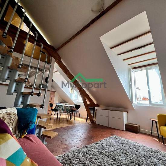 Très beau duplex type loft, situé à Montmartre, à deux pas de la place des Abbesses, dans la charmante rue des Trois Frères. Calme absolu grâce à la circulation quasi inexistante. Entièrement rénové, clair et parfaitement agencé, ce bien offre de beaux volumes et une vue imprenable sur la Tour Eiffel… depuis votre lit ! Coup de cœur assuré ! Loyer de base 1790 €/mois. Classe énergie C, Classe climat B Montant estimé des dépenses annuelles d'énergie pour un usage standard : entre 100.00 € et 100.00 € sur les années 2021, 2022 et 2023 (abonnem...