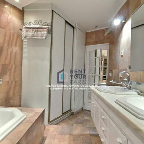 Reference to remind : RELAISMEYNADIER This furnished 80.91 m² Loi Carrez flat comprises an entrance hall, a living room, an open-plan kitchen, a hallway, two bedrooms, a bathroom, a separate toilet and a balcony. Located on the 5th floor, accessible by lift, of a 20th-century building. Located on Rue Meynadier, in the 19th arrondissement, very close to the Parc des Buttes Chaumont. The nearest station is Laumière Line 5. Heating and hot water are individual electric. Facilities : Oven, hob, extractor fan, fridge, dishwasher, washing machine,...