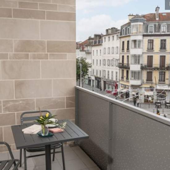 Localisée en centre-ville, à quelques mètres du quartier du Hedas à l'emplacement de l'ancien magasin Larraillet, la résidence offre une situation idéale à proximité des boutiques et des transports en commun. Avec son architecture citadine, soulignée par sa belle toiture en zinc et sa façade en pierre, la résidence et ses 80 appartements pensés pour répondre aux besoins des locataires s'intègrent harmonieusement dans leur environnement. Une laverie est présente dans la résidence.