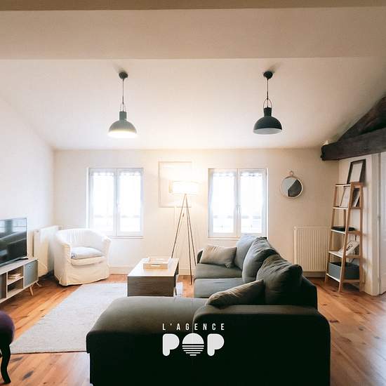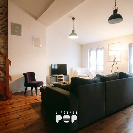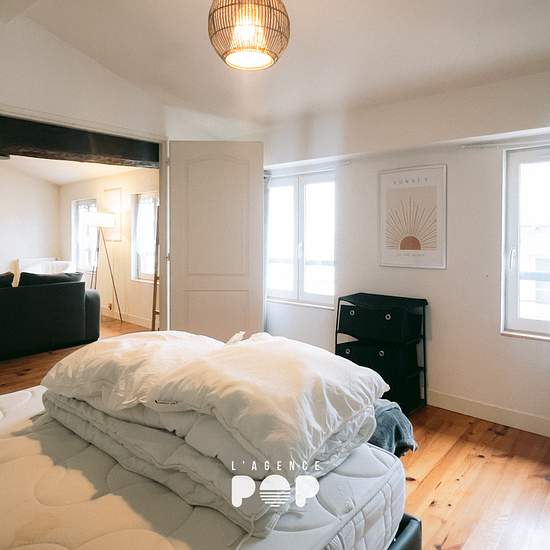 Au 4ème et dernier étage d'un immeuble de centre-ville, "MEZZO" est un appartement meublé au charme immédiat. Lumineux, chaleureux et plein de caractère, il offre une atmosphère douce et cosy, idéale pour celles et ceux qui recherchent un lieu de vie agréable, pratique et bien situé. En poussant la porte, vous arrivez dans une entrée qui distribue intelligemment les espaces. Vous découvriez un WC indépendant et une salle de bain adorable et parfaitement aménagée, avec double vasque, machine à laver et sèche-linge intégrés : un vrai confort a...