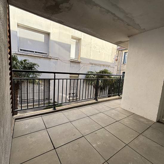 F2 EXCELLENT ETAT+ EMPLACEMENT DE PARKING DANS RESIDENCE SECURISEE FERMEE ENTRE LA FNAC ET L'ANCIENNE GARE- 40.25m2 EN 1ER ETAGE- FENETRES DOUBLE VITRAGE ET VOLETS ROULANTS- CUISINE OUVERTE AMENAGEE SEMI EQUIPEE AVEC PLAQUE HOTTE ET FRIGO NEUF- SALLE D'EAU / WC- PLACARDS- JOLIE TERRASSE AU CALME. Loyer 490,00EUR dont PROVISION SUR CHARGES: 50EUR/mois, charges locatives de copropriété + TOM + une provision pour l'eau; soumises à régularisation annuelle.
