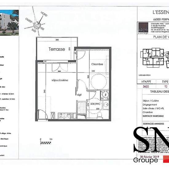 QUIETIS GESTION // RESIDENCE L'ESSENTIEL // DISPOSITIF PINEL DISPONIBLE LE 30/01/2026 A proximité de la résidence se trouve de nombreux services et commerces tels que le supermarché Lidl, des banques, pharmacie, station-service. Concernant les transport la Gare SNCF de Perpignan se trouve à 4km, la Ligne de Bus 7 et 2 sont accessible à pieds. Contacter Monsieur LEURS Jean Luc au 06x80x43x66x56 pour visiter cet appartement T2 de 40.46 m² au rdc avec une terrasse de 8.20 m². Un séjour donnant sur une cuisine équipée d'un plan de travail, évier...