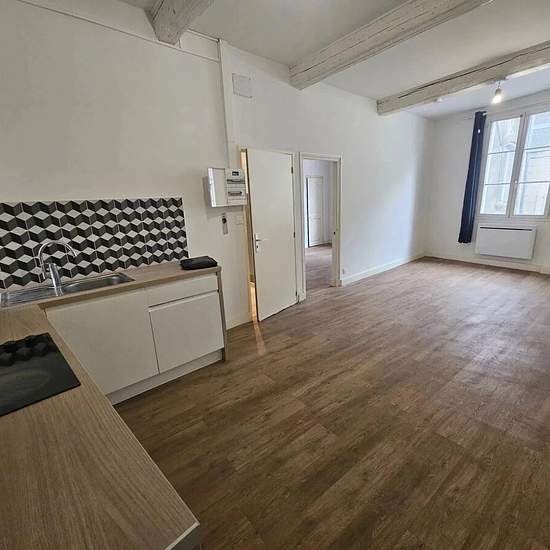 T2 centre ville en très bon état T2 entièrement rénové au sein d'un petit immeuble du centre ville : rue Grande. Appartement situé au 2ème étage de 40 m² entièrement rénové, très bien isolé. Cet appartement dispose d'un confort moderne. Il se compose d'une pièce de vie d'une surface de 23 m² avec une cuisine ouverte équipée de meubles récents, une plaque de cuisson et une hotte. Emplacement pour un lave linge et un lave vaisselle., une grande chambre de 13 m², une salle d'eau-wc. En complément une pièce annexe de rangement privative située a...