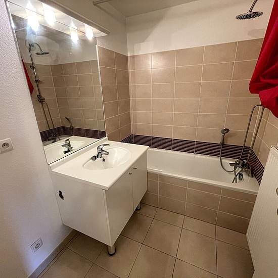 PFASTATT - Rue des Écrus Caution VISALE demandée. Lumineux 2 pièces situé au 1er étage avec ascenseur. Il comprend une entrée avec placards, une cuisine équipée (four, plaques, hotte, réfrigérateur) ouverte sur un séjour lumineux avec terrasse, une chambre, une salle de bains avec baignoire et un WC séparé. LES PLUS : cave et une place de parking privative. Chauffage individuel au gaz. Loyer 620 euros + 60 euros de charges (eau froide, communs, ascenseur) Dépôt de garantie : 620 euros Honoraires d'agence à la charge du locataire : 484,55 eur...