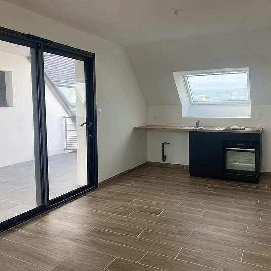 A louer au coeur du bourg de Plouarzel, appartement T2 neuf avec terrasse. Pièce de vie avec cuisine US aménagée, chambre, salle d'eau. Espace extérieur de 18 m2. 1er et dernier étage. Facilité de stationnement. Loyer de base 650 €/mois. Dépôt de garantie 650 €. Classe énergie C, Classe climat A Montant estimé des dépenses annuelles d'énergie pour un usage standard : entre 540.00 € et 770.00 € sur les années 2021, 2022 et 2023 (abonnements compris). Les informations sur les risques auxquels ce bien est exposé sont disponibles sur le site Géo...
