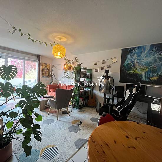 Au sein d'un environnement calme et sécurisé, bel appartement T2 de 49.29m² comprenant une entrée avec un placard, un salon séjour lumineux donnant sur balcon, une cuisine équipée (plaque gaz, hotte,) et aménagée, une chambre avec un placard, une salle de bain et un wc. Chauffage collectif une place de parking privative.