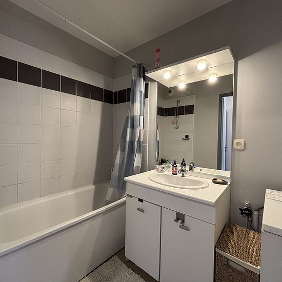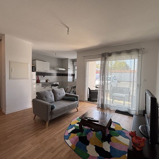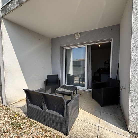 Secteur Poitiers Ouest, Un appartement de type 2 au rez de chaussée avec terrasse comprenant : Séjour avec partie cuisine ouverte, dégagement, une chambre avec placards, salle de bains et WC. Terrasse et parking extérieur. Disponible