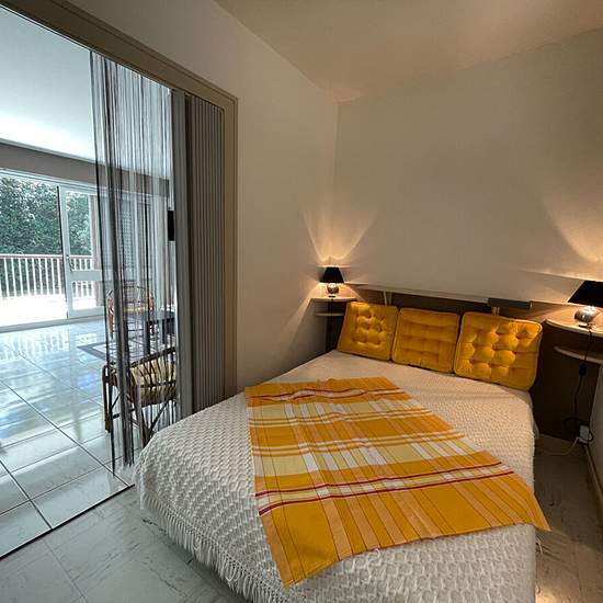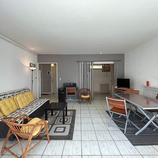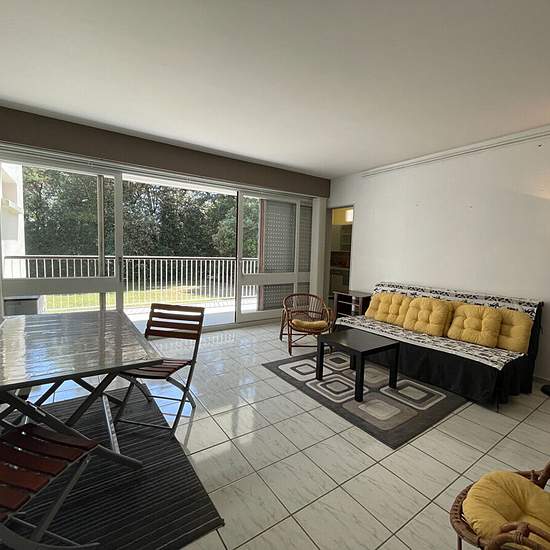 LOCATION et TARIF A LA SEMAINE - Appartement T2 au rez-de-chaussée, d'environ 45 m², situé à environ 300m de la plage et des commerces au milieu d'un parc boisé. Vous y découvrirez un séjour spacieux et lumineux, un salon avec un canapé clic-clac (140/190), donnant sur le balcon de 10 m² avec vue sur le parc. Une cuisine indépendante aménagée et équipée, une chambre avec un lit de (140) et une salle d'eau viennent compléter ce bien. Stationnement privé, place de parking N° 111