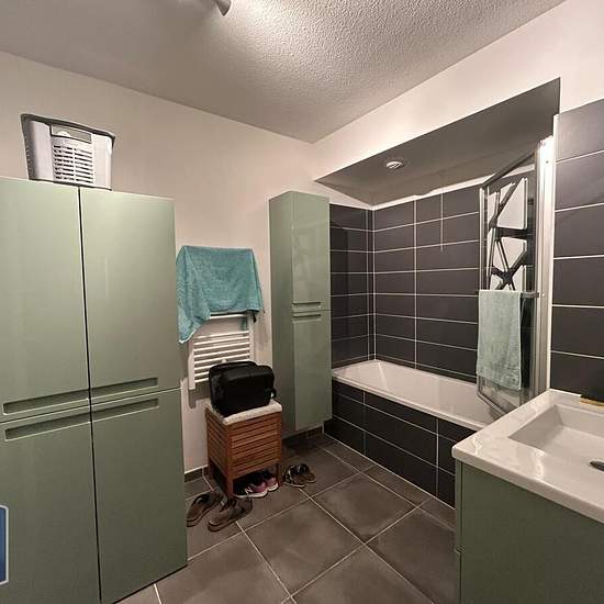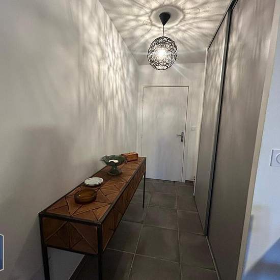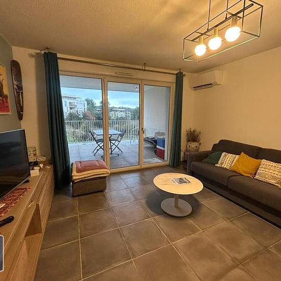 À LOUER : Appartement meublé de type 2 comprenant une entrée avec placard, une cuisine meublée et équipée ouverte sur le séjour. Une grande chambre de 13 m². Une salle de bains et des toilettes séparés. Une terrasse de 13,56 m². Appartement bien aménagé, avec des meubles de qualité. Une place de parking en sous-sol. Chauffage individuel électrique. Eau froide et eau chaude comprises dans les charges. Résidence récente et calme. A 7 min en voiture du nouvelle arrêt de tram 5 Clapiers. Le bien est soumis au statut de la copropriété. Loyer de 8...