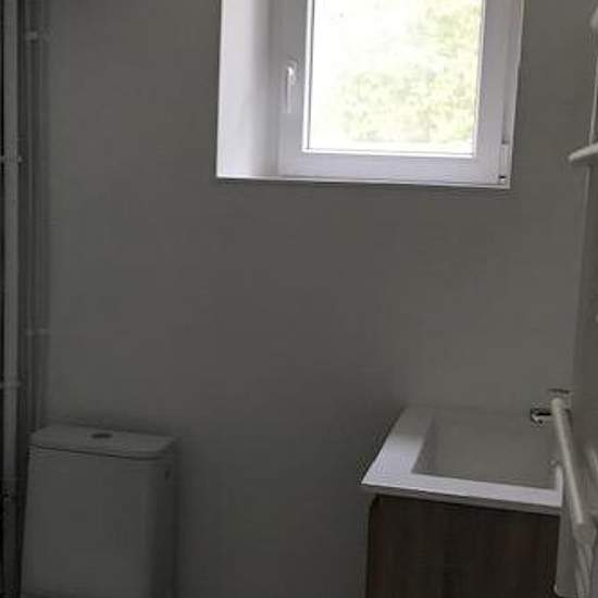 Appartement situé au RDC d'un petit immeuble ancien, comprenant : Entrée sur séjour, cuisine aménagée et équipée (four, plaque, hotte, réfrigérateur) très récente, 1 chambre, salle eau avec WC. Chauffage individuel électrique. Eau froide avec sous-compteur.