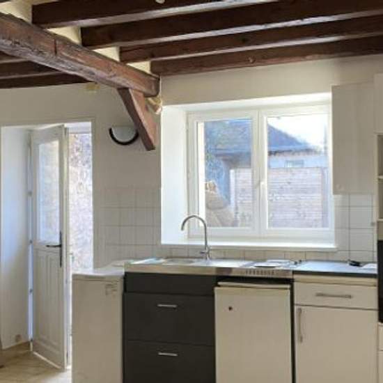 Au calme, petit appartement indépendant comprenant : au rez-de-chaussée : Entrée sur séjour, cuisine aménagée ouverte, salle d'eau avec WC. Sous combles : 1 chambre. Chauffage individuel électrique. petit extérieur.
