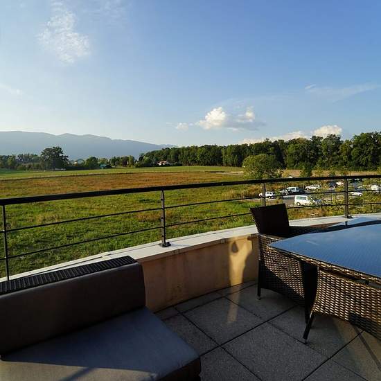 À Prévessin-Moëns, découvrez ce bel appartement T2 plein de charme, entièrement meublé, niché dans une résidence calme et sécurisée avec gardien et piscine réservée aux résidents. Il bénéficie d’un environnement paisible et d’une magnifique vue sur les champs et le Jura, sans aucun vis-à-vis. L’appartement se compose d’une grande cuisine entièrement équipée, ouverte sur un séjour lumineux donnant accès au balcon, Parfait pour profiter du soleil et de la vue dégagée. La chambre, spacieuse et confortable, offre de nombreux rangements et un vra...