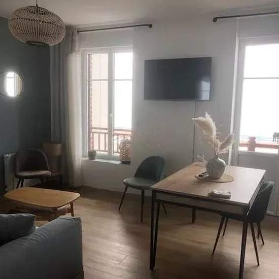 Appartement de charme à Quend-plage avec vue mer, comprenant : un séjour avec cuisine entièrement équipée et neuve, une chambre coté cour avec un lit 140x190 et une salle de douche avec toilette. Prestation de grande qualité