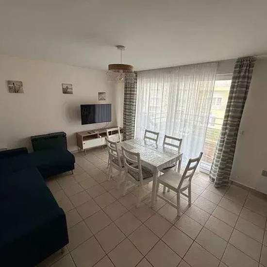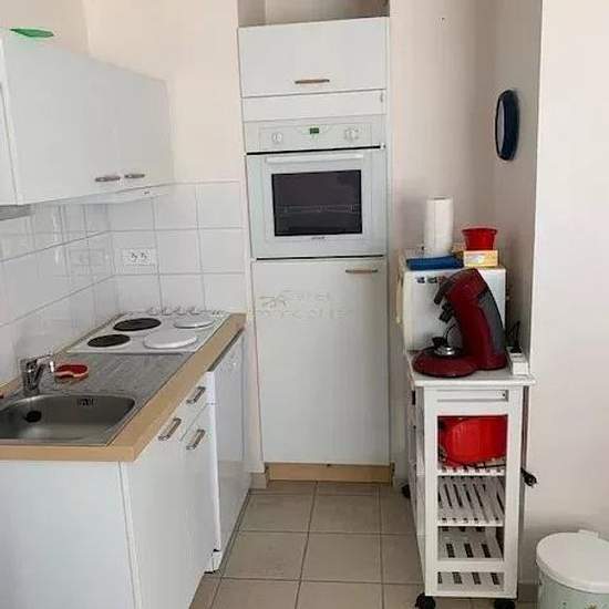 Appartement situé au 1er étage d'une résidence situé à 20m de la plage, comprenant : une entrée, un séjour avec cuisine donnant sur une terrasse, une chambre, une salle de douche et son toilette. Un emplacement de stationnement dans un parking sécurisé inclus