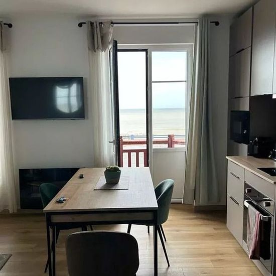 Appartement de charme à Quend-plage avec vue mer, comprenant : un séjour avec cuisine entièrement équipée et neuve, une chambre coté cour avec un lit 140x190 et une salle de douche avec toilette. Prestation de grande qualité
