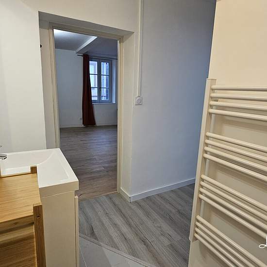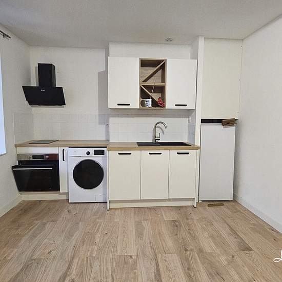 Bel appartement refait à neuf, et donc confortable à Rabastens, au premier et dernier étage avec local à vélos. La cuisine est équipée (Hotte - Plaque 2 feux - four - lave linge - frigo congélateur ) et aménagée avec placards bas et haut. La pièce à vivre est lumineuse et spacieuse. Les toilettes sont séparées; La salle d'eau ouverte sur la chambre est agréable. La consommation d'eau est incluse dans les charges. Loyer 590? dont 20? de provisions de charges avec régularisation annuelle. Dépôt de garantie: 570? Honoraires agence: 295?. Les in...