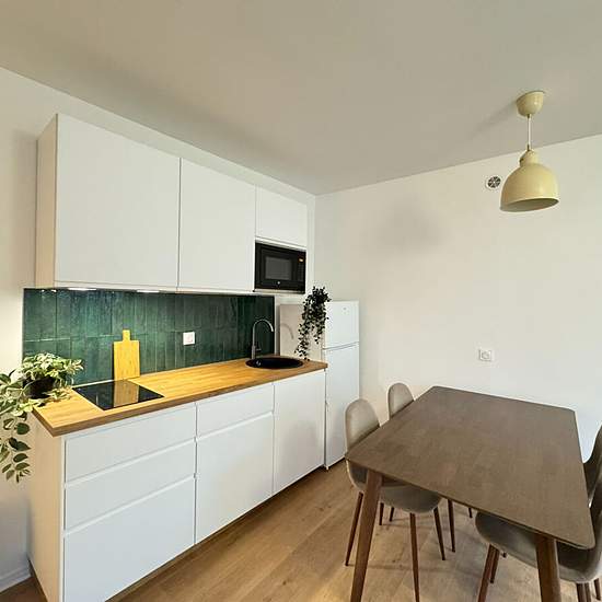 En plein coeur de la rue de Vesle, à proximité immédiate de toutes les commodités dans l'hypercentre de Reims, venez découvrir ce bel appartement T2 entièrement rénové et meublé avec goût. Il se compose d'une entrée avec rangements, d'un salon / séjour spacieux donnant sur un balcon, avec cuisine cuisine entièrement équipée, d'une chambre séparée avec rangements, d'une salle de douches avec WC séparés. Machine à laver fournie. Eau chaude et chauffage individuels électriques. Disponible de suite - Reims - 93 rue de Vesle.
