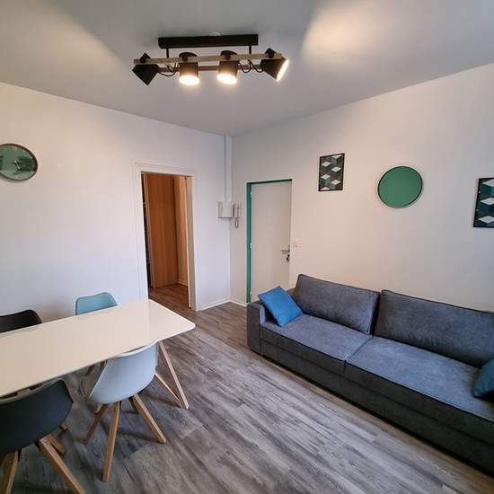 A Louer Reims Secteur Clairmarais-Courcelles : 11-13 rue de Fismes (Code parcelle: 000-AR-765) Appartement de type 2 meublé de 38m² situé au 1er étage, comprenant un séjour, une cuisine meublée et équipée (plaque + four+ hotte+ micro-ondes + réfrigérateur), une chambre avec dressing, une salle de douche avec wc (+ machine à laver). Chauffage individuel électrique. Disponible le 31/12/2025 Loyer: 620.00 euros HC Charges: 20.00 euros Dépôt de Garantie: 1240.00 euros Honoraires locataire: 470.60 euros ttc dont état des lieux d'entrée 166.60 eur...