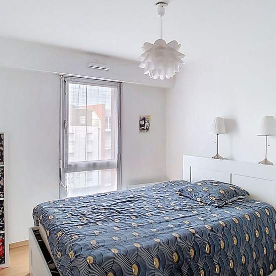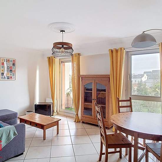 Appartement T2 meublé de 58 m2 - à louer Rezé Pont Rousseau. LOCATION MEUBLÉE - Bel appartement T2 à louer, idéalement situé rue Louis Aragon à Rezé. Ce T2 d'une superficie de 58m2 habitable (52m2 loi carrez) est agréable à vivre et lumineux. Il comprend : une entrée avec placard, une cuisine A/E, une buanderie, un séjour donnant sur balcon, un WC indépendant, une salle d'eau et une chambre avec dressing. Un stationnement en sous-sol privatif complète le bien. La copropriété (1988) est calme et dotée d'un ascenseur. Les 75 € de provision po...