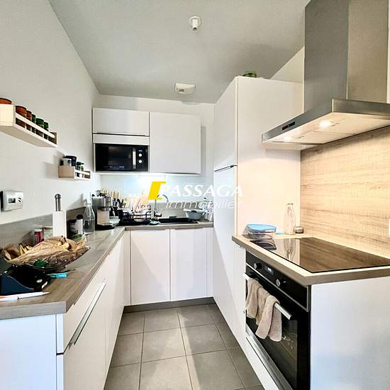 RIGNAC : Dans résidence de standing T1 Bis, à deux pas des commerces, cuisine aménagée (meubles hauts et bas, plaque de cuisson induction, four à pyrolyse, miro ondes, hotte aspirante, frigidaire congélateur), séjour ouvrant sur une terrasse de 11.05 m² exposition EST avec un store électrique, chambre, une salle d'eau aménagée (meuble vasque, douche italienne, sèche serviette, lave-linge) avec un WC Annexe : un parking privatif