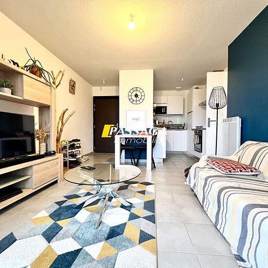 RIGNAC : Dans résidence de standing T1 Bis, à deux pas des commerces, cuisine aménagée (meubles hauts et bas, plaque de cuisson induction, four à pyrolyse, miro ondes, hotte aspirante, frigidaire congélateur), séjour ouvrant sur une terrasse de 11.05 m² exposition EST avec un store électrique, chambre, une salle d'eau aménagée (meuble vasque, douche italienne, sèche serviette, lave-linge) avec un WC Annexe : un parking privatif