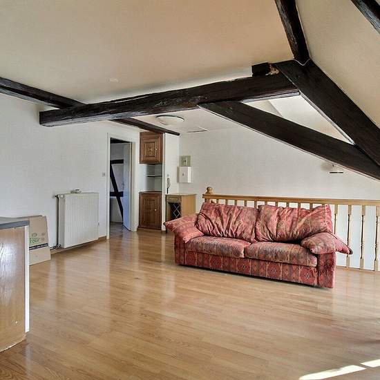 Situé en plein coeur du centre-ville de la charmante commune de Riquewihr, à proximité de Colmar et des commerces, nous vous proposons ce logement 2 pièces en duplex d'une surface de 43m² habitables, au dernier étage d'un petit immeuble. Il se compose de la manière suivante : Au premier niveau : - d'une entrée Au second niveau : - d'une pièce de vie avec cuisine équipée et aménagée (four, plaque, hotte, réfrigérateur) de 25m² - une chambre - une salle d'eau avec douche, WC et branchement machine à laver Chaudière individuelle au gaz. Local v...
