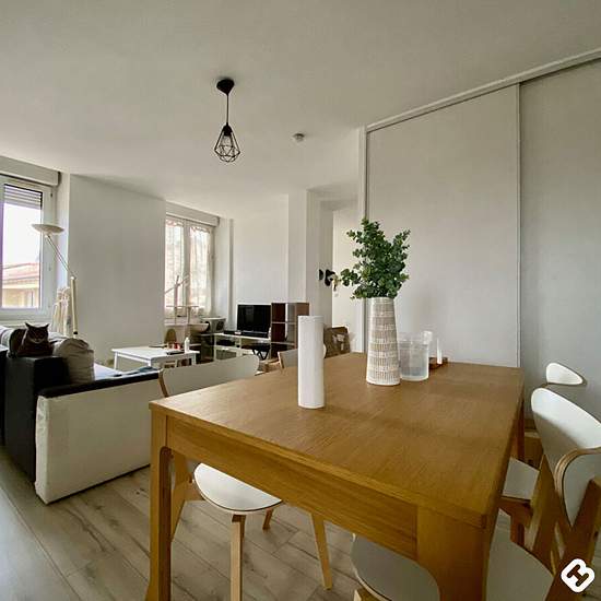 L'agence HB immobilier vous propose ce grand appartement de type 2 situé sur la commune de ROANNE, à proximité de l'Hôtel de Ville. Au 2ème étage ; il se compose d'une entrée, un salon-séjour, une cuisine attenante aménagée et meublée avec four, plaques de cuisson et hotte, une chambre, une salle de bains, et un WC séparé. Le logement ne compte pas moins de 3 placards ainsi qu'une cave. Pas de problème de stationnement puisque l'appartement est loué avec un garage privatif ! Chauffage individuel gaz.