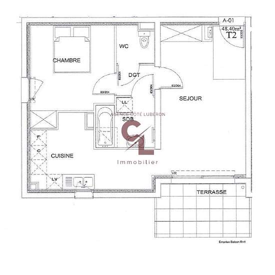 Magnifique appartement 2 pièces de 47,81 m² situé à Robion en résidence sécurisée, avec terrasse et jardin privatif (20 m² env. en tout) exposé sud-ouest. Lumineuse pièce de vie de 19.21 m², coin cuisine aménagé et semi-équipé, une chambre, une salle de bain, un toilette séparé. Les charges comprennent : les consommations de chauffage, l'eau, la climatisation. Côté confort : placards intégrés, interphone, fenêtres en double vitrage et volets roulants électriques. Une place de parking dans l'enceinte sécurisée de la résidence. Les information...