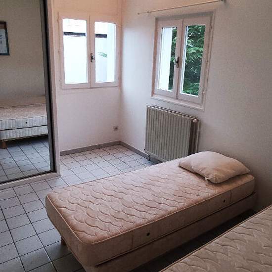 Disponible rapidement, petite maison fond de jardin. Proche du centre ville de Roche la Molière 56m2 , avec une chambre + mezzanine. Cuisine équipée + salle de bain avec douche. Grande véranda. Jardin partagé avec la propriétaire. Idéal personne seule .