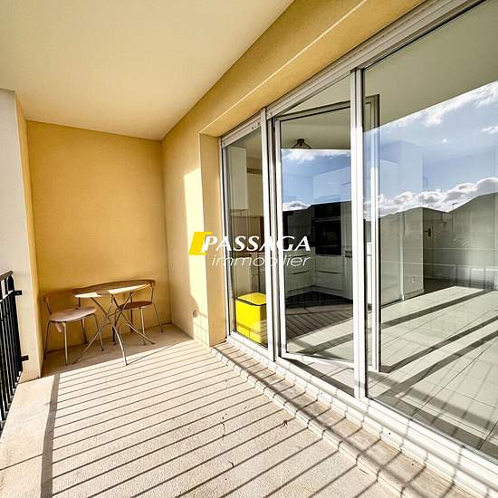 RODEZ : T2 lumineux comprenant un hall d'entrée avec un placard aménagé, une cuisine équipée (meubles hauts et bas, plaque de cuisson induction, four à pyrolyse, micro ondes, hotte aspirante, frigidaire congélateur, lave-vaisselle) ouverte sur le séjour avec un balcon loggia exposé Sud de 6.42 m², une chambre avec placard, une salle d'eau aménagée, un WC indépendant, un dégagement coin nuit. Chauffage individuel électrique avec gestionnaire Annexe : un parking privatif au sous-sol