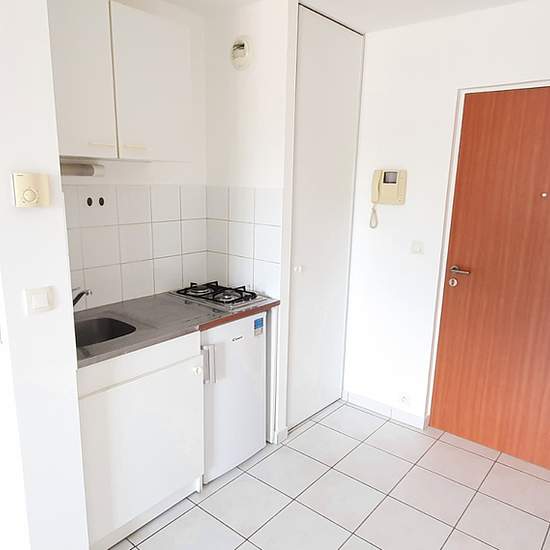 RODEZ-BOURRAN : T1 bis récent proche IFSI, CCI, Charles Carnus et hôpital, lumineux et fonctionnel comprenant : séjour avec coin cuisine équipée (placards, plaque cuisson, frigidaire), salle d'eau aménagée avec WC, 1 chambre avec placard. Annexe : parking extérieur privatif.