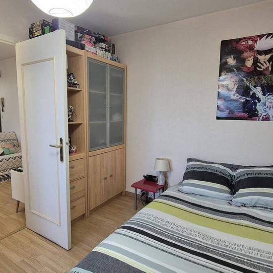 Appartement meublé situé au 3ème étage avec ascenseur comprenant une entrée avec placard, une cuisine ouverte avec éléments hauts et bas, une hotte, un réfrigérateur, deux plaques vitrocéramique, un micro-onde, un four et une table en formica. Un séjour avec une table ronde, quatre chaises pliantes, deux meubles hauts de rangements avec tiroirs, un canapé (BZ), deux tables basses gigognes et une table de chevet en verre. Une chambre avec un lit, un fauteuil, une commode, une table à repasser, une tablette, un lampe sur pied. Une salle d'eau ...