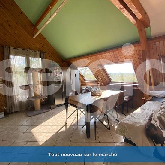 Amateurs de calme et de la campagne, ce logement est fait pour vous ! Superbe logement rénové, très lumineux, avec un balcon offrant une vue imprenable sur le lac bleu. Cet appartement vous offre une cuisine meublée et équipée (plaques, four, hotte) ouverte sur un vaste séjour de 35 m² avec poutres apparentes, deux belles chambres dont une avec placards ainsi qu' une salle de bains avec un branchement machine. Une grande cave et un parking sont inclus dans le loyer. Le chauffage est électrique (radiateurs par inertie). A visiter sans tarder !