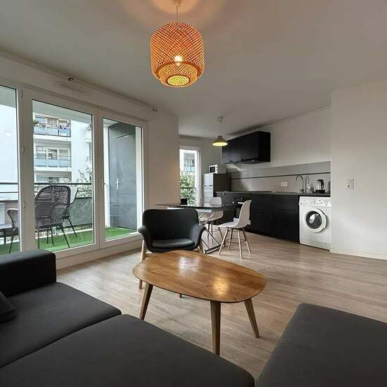 2-bedroom apartment for rent in the Parisian suburb of Romainville. Light residence for family living near the capital. Size - 64 square meters; 2nd French floor of a building with elevator; balcony. Number of tenants - up to 4 people. The apartment consists of: a living room, two bedrooms, a kitchen, a bathroom, a hallway. The apartment is located in Romainville - a town located just 10 kilometers from the center of Paris (in particular, the Louvre Museum). Developed infrastructure, convenient logistics. A good option for a family looki...