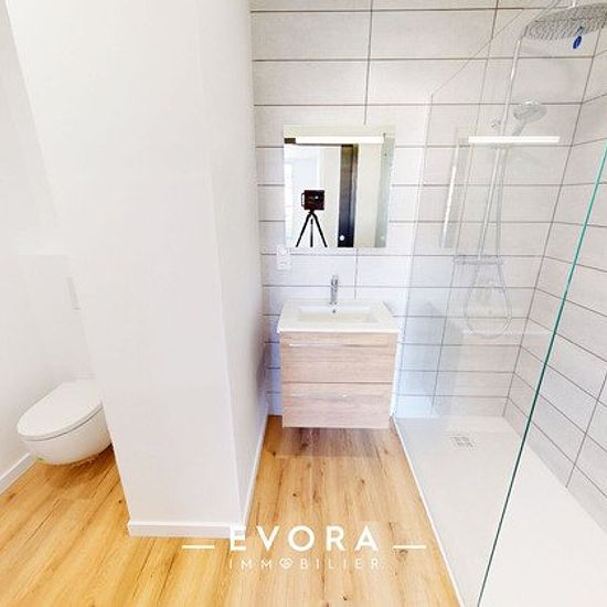 Appartement entièrement neuf de 45,63 m² situé au premier étage d'un petit immeuble résidentiel en centre-ville de Rombas. Comprenant : une entrée desservant une lumineuse pièce de vie offrant une cuisine entièrement équipée ouverte sur salon-séjour, avec accès par baie vitrée à une agréable terrasse sans vis-à-vis, une chambre, une salle de douches avec WC ainsi qu'une buanderie. Prestations haut de gammes : cuisine équipée, extérieur, matériaux de très bonne facture, pompe à chaleur avec climatisation réversible, isolation phonique et ther...