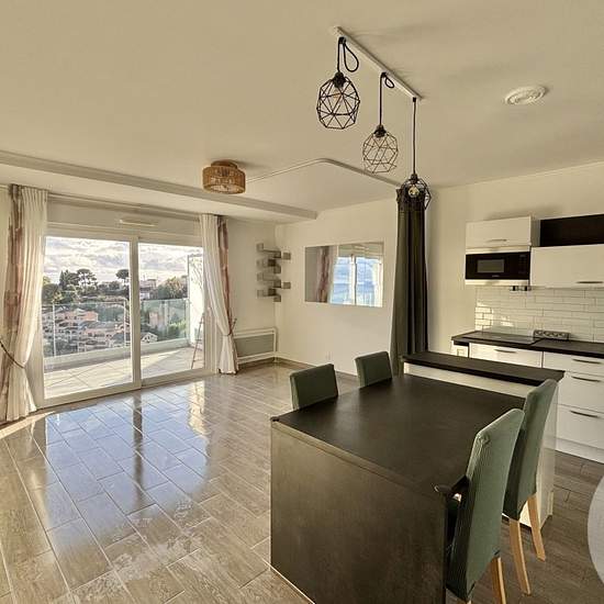 ROQUEBRUNE CAP MARTIN - QUARTIER DU HAMEAU Votre agence Century 21 Molière vous propose à la location meublée ce très bel appartement de deux pièces, calme et lumineux, dans une résidence de standing avec piscine. Il se compose d'un spacieux séjour avec cuisine ouverte aménagée et équipée, d'une chambre avec placard et d'une salle d'eau avec WC. Vous profiterez d'une magnifique terrasse d'environ 20m², accessible par le séjour et la chambre, vous offrant une vue dégagée et sans vis-à-vis sur la mer et la vallée. Une place de parking privée e...