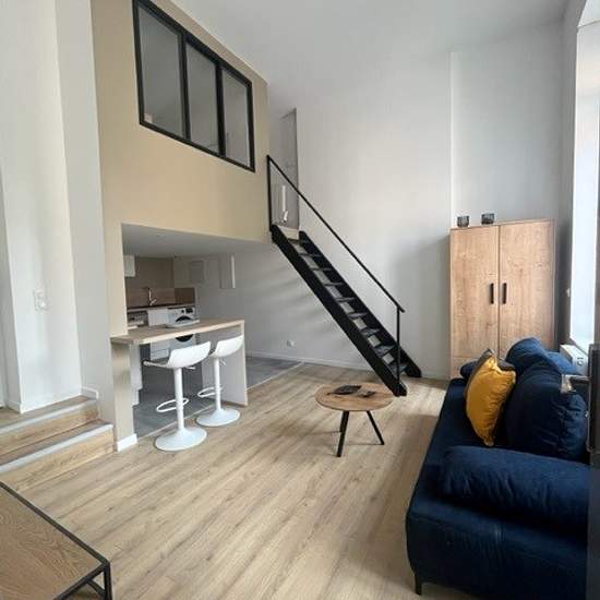 Appartement T2 meublé de 32 m², situé RUE MIMEREL à ROUBAIX, à proximité des transports et des grandes écoles, au 1er étage d'une belle maison de maître rénovée en 2023. Il se compose au 1er niveau d'un séjour avec coin cuisine équipée (four, lave-linge, lave-vaisselle, plaques de cuisson, réfrigérateur, hotte), d'une salle de bains avec douche et toilettes. A l'étage : une chambre avec lit double. Chauffage individuel électrique. Eau chaude individuelle électrique. DISPONIBLE DES LE 28 OCTOBRE 2025. Loyer HC : 745 euros/mois Provision charg...