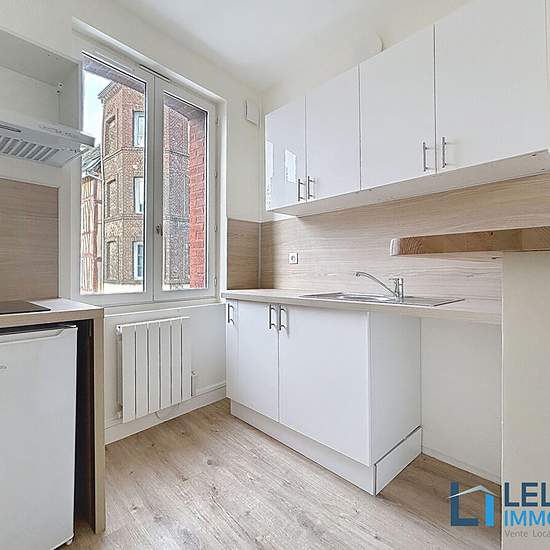 Appartement 2 pièces non meublé - Quartier Saint-Marc / Aître Saint-Maclou Appartement entièrement refait à neuf, situé dans le quartier recherché de Saint-Marc, en face de l'Aître Saint-Maclou. Il comprend : Un séjour lumineux expo sud avec placards, une cuisine ouverte aménagée et équipée (meubles hauts et bas, évier, plaque électrique, réfrigérateur, branchement machine à laver et meuble bar), un dégagement, une chambre avec placards, une salle d'eau (douche, meuble vasque et WC). Chauffage individuel électrique. Quartier calme et prisé, ...