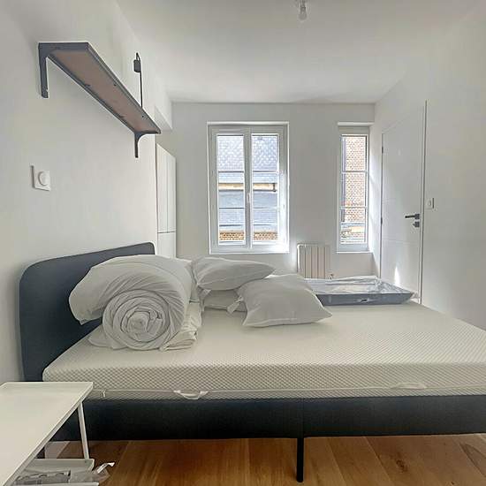 ROUEN HYPER CENTRE / PLACE DES CARMES - rue des Fossés Louis VIII Dans un immeuble entièrement rénové, très joli F2 MEUBLE de 24,76 m², au 1er étage, comprenant : séjour avec cuisine aménagée et équipée (hotte, réfrigérateur, plaques de cuisson), une chambre, salle de douches. Chauffage individuel électrique et eau individuelle. Disponible dès maintenant.