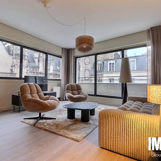 IMMÖÖ vous propose à la location ce bel appartement meublé de 68 m2 situé au 2ème étage avec ascenseur de la résidence sécurisée « espace du palais ». Idéalement positionné dans le coeur historique de Rouen, ce bien meublé et rénové avec goût présente : une entrée disposant d'un espace buanderie et WC indépendant, un séjour avec placard ouvert sur une terrasse couverte de 14 m2, un salon confortable avec balcon, une cuisine aménagée et entièrement équipée donnant sur un second balcon, un dégagement avec placard desservant une salle de douche...