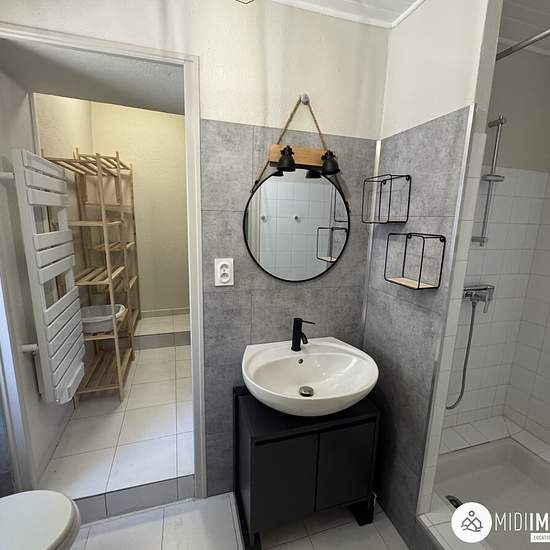 ROUFFIAC ? Au coeur du village, charmant appartement T2 meublé d'environ 46 m² habitables, situé dans un environnement calme et agréable. Il se compose d'une belle entrée avec un placard de rangement, d'une pièce de vie avec un coin cuisine aménagée et entièrement équipée. Une chambre avec rangement, ainsi qu'une salle d'eau avec meuble vasque et toilettes. Disponible : Immédiatement Chauffage : GAZ Menuiseries : Double Loyer : 680,00? dont forfait sur charges : 190,00? par mois (eau du logement, chauffage, électricité, internet) Honoraires ...