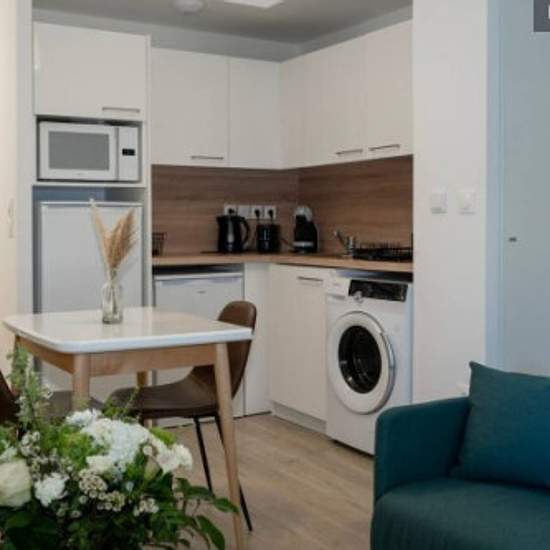 Cet appartement absolument exceptionnel de 49m² récemment rénové et décoré avec raffinement se situe au rez-de-chaussée d'une résidence extrêmement calme et sécurisée. L'appartement est très lumineux. Il peut accueillir 2 personnes et comprend une kitchenette tout équipée (réfrigérateur, four micro-ondes, plaques électriques, cafetière électrique, bouilloire, vaisselle et ustensiles de cuisines), une belle salle de bain avec douche à l'italienne ainsi qu'une télévision écran-plat et une connexion wifi gratuite. Place de parking disponible, a...