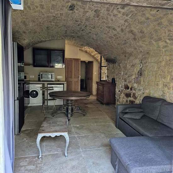 Loue T2 meublé au coeur d un mas provençale dans une propriété arboré de 3 hectares en pleine campagne. A 5 minutes des commerces de bagnols sur ceze. Possibilité de faire son potager.