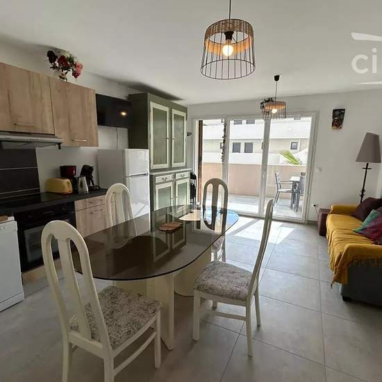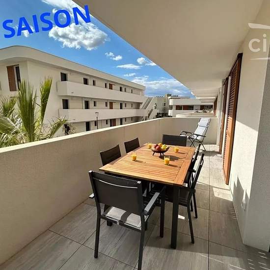 LOC SAISON : Charmant T2 cabine dans une résidence neuve de 2025, idéal pour une famille, dans une résidence sécurisée avec piscine. Le ménage et le linge de lits sont inclus (possibilité de louer les kits de serviettes à l'agence). Profitez de vos vacances dans un appartement de 50 m² avec une terrasse de 22. 50m2 vue sur la piscine à 400m de la plage. Cet appartement idéal pour une famille avec 2 enfants, se trouve au premier étage d'une résidence sécurisée avec piscine, le logement dispose d'une place de parking et du wifi. Le logement es...