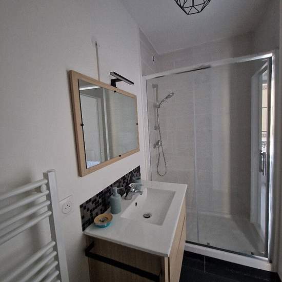 Sezanne centre ville, appartement de type 2, refait à neuf, meublé et équipé, offrant pièce de vie avec coin cuisine, chambre, salle d'eau avec wc. Les charges comprennent : l'eau froide + la taxe des ordures ménagères + électricité et ménages des communs.
