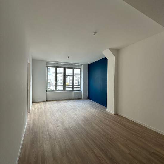 SAINT BRIEUC CENTRE VILLE T2 neuf d'environ 45m² situé au 2ème et dernier étage dans un immeuble entièrement rénové comprenant une entrée avec placard, WC, une pièce de vie avec une cuisine aménagée et équipée (plaque, hotte, frigo), une chambre et une salle de douche. Chauffage électrique. LUMINEUX ! EMPLACEMENT IDEAL !